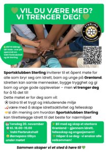🤝Sportsklubben Sterling inviterer til et åpent møte for alle som bryr seg om idrett, barn og unge på Grønland. Vi tror på at idretten kan samle mennesker, bygge trygghet, vennskap og gi barn og unge gode opplevelser. Men vi trenger deg for å få det til!